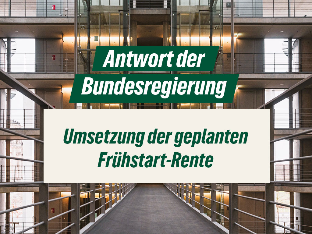 Jetzt ist die Bundesregierung am Zug: Sie muss endlich die Eckpunkte für die Frühstartrente vorlegen, damit junge Menschen eine echte Chance auf einen sicheren Rentenstart bekommen.