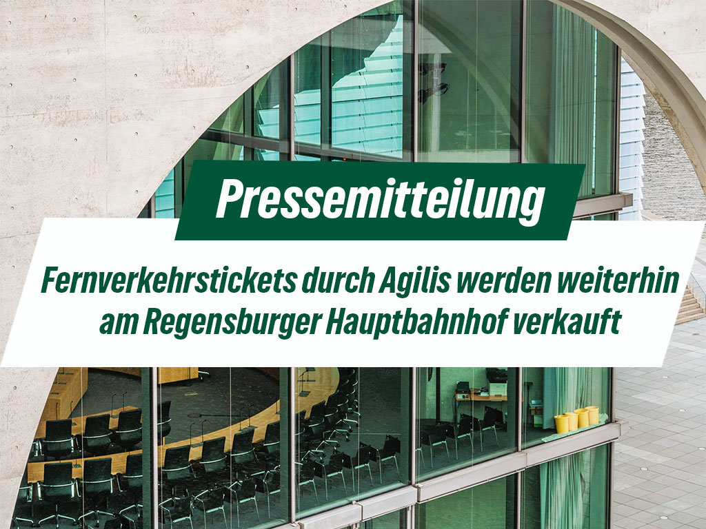 Die Frage, ob am Regensburger Hauptbahnhof weiterhin Fernverkehrstickets über das Eisenbahnverkehrsunternehmen agilis gekauft werden können und ob Kundinnen und Kunden dort auch Beratung erhalten, beschäftigt mich und meine Bundestagskollegin Dr. Carolin Wagner bereits seit Jahren. In diesem Zusammenhang haben zahlreiche Gespräche stattgefunden – mit dem klaren Ziel, Beratung und Verkauf von Fernverkehrstickets durch agilis dauerhaft zu erhalten.